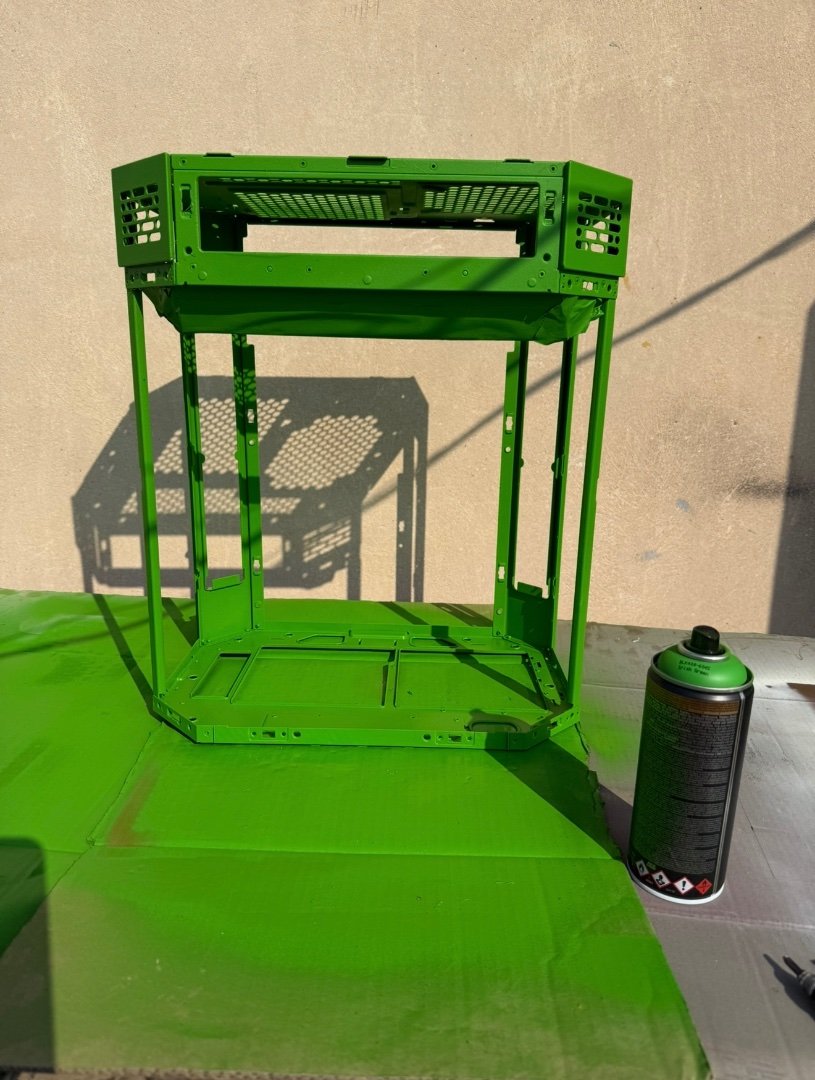 As far week goes Iโm finished mostly with painting . As you can see I made a custom base for motherboard tray, and already painted it ย , also cut the back panel and I ย will put a tempered glass on it so you can see the interior of the case .Also an overall view of the case with double 360 Rads placed on it ! ย No more spoils ย for now . More updates soon !